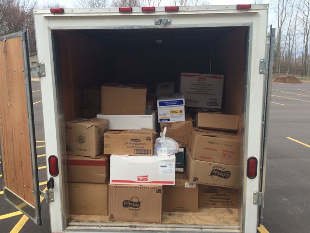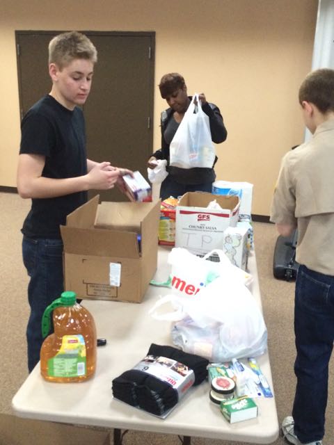 Troop 603 sponsors an annual community food drive. Scouts sign up for routes throughout the local community and leave bags earlier in the week. On the day of the drive, the bags are collected and the food is boxed and delivered to local food pantries. In 2016, over 5300 pounds were collected and delivered to three food pantries.